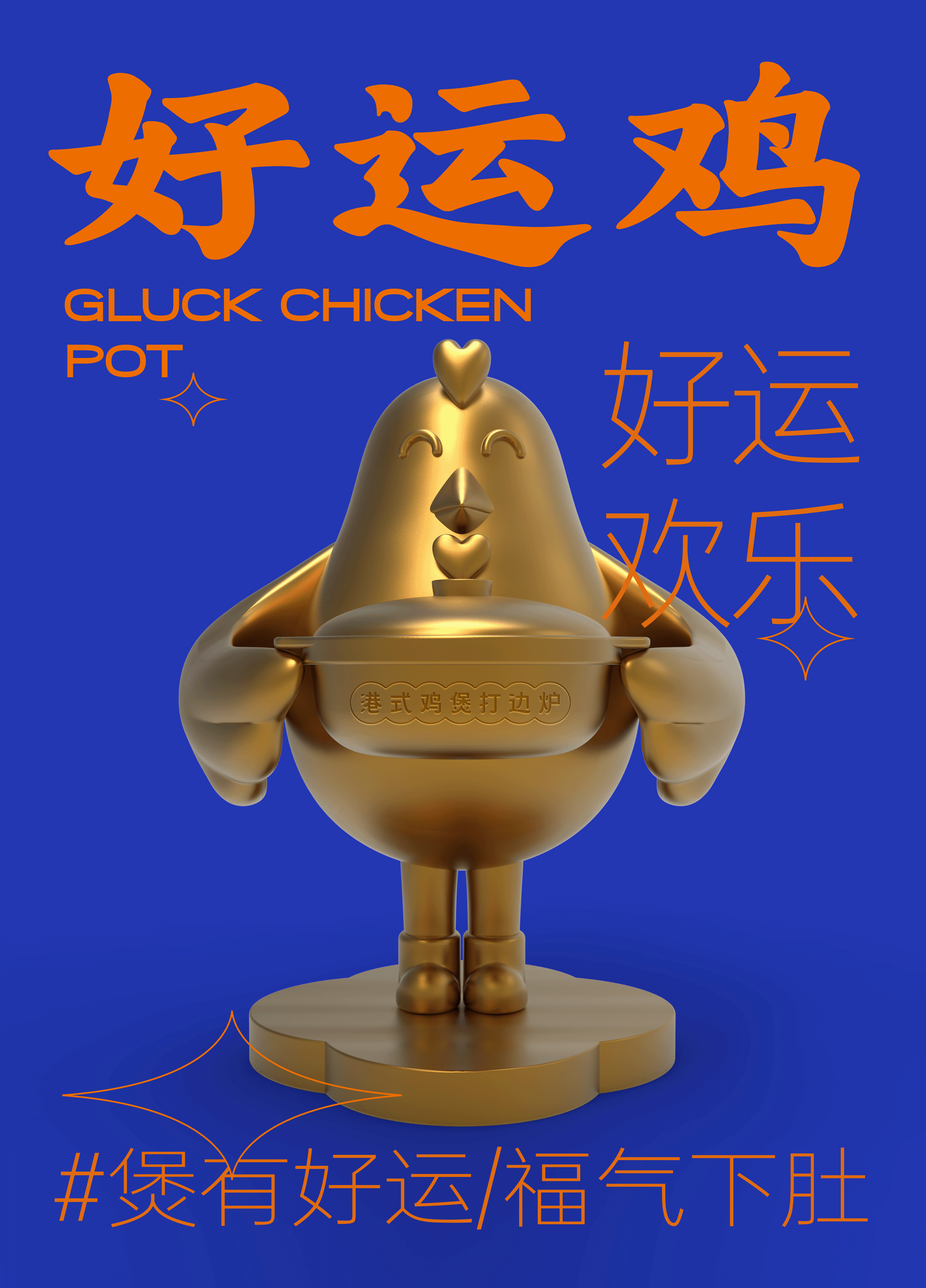 通過放大品類基因,結(jié)合品牌“好運(yùn)歡樂”的價(jià)值定位,我們?yōu)楣镜摴镜摯蛟飒?dú)有的價(jià)值形象IP“好運(yùn)雞”,它不僅可以強(qiáng)化品類認(rèn)知與品牌辨識度,也使品牌更具人格化屬性,為品牌增加情感觸點(diǎn),增強(qiáng)品牌與消費(fèi)者之間的情感互動(dòng)。
